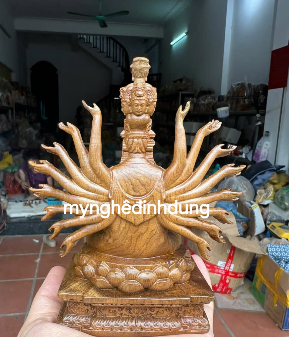 Tượng phật thiên thủ thiên nhãn ngài nghìn mắt nghìn tay được làm bằng chất liệu gỗ bách xanh liền khối tự nhiên 100% Kt cao 15x12x7cm _ Tượng được chế tác làm và hoàn thiện từ bàn tay khối óc tài hoa và những người thợ giàu kinh nghiệm cũng như tay nghề cao trong làng nghề truyền thống.