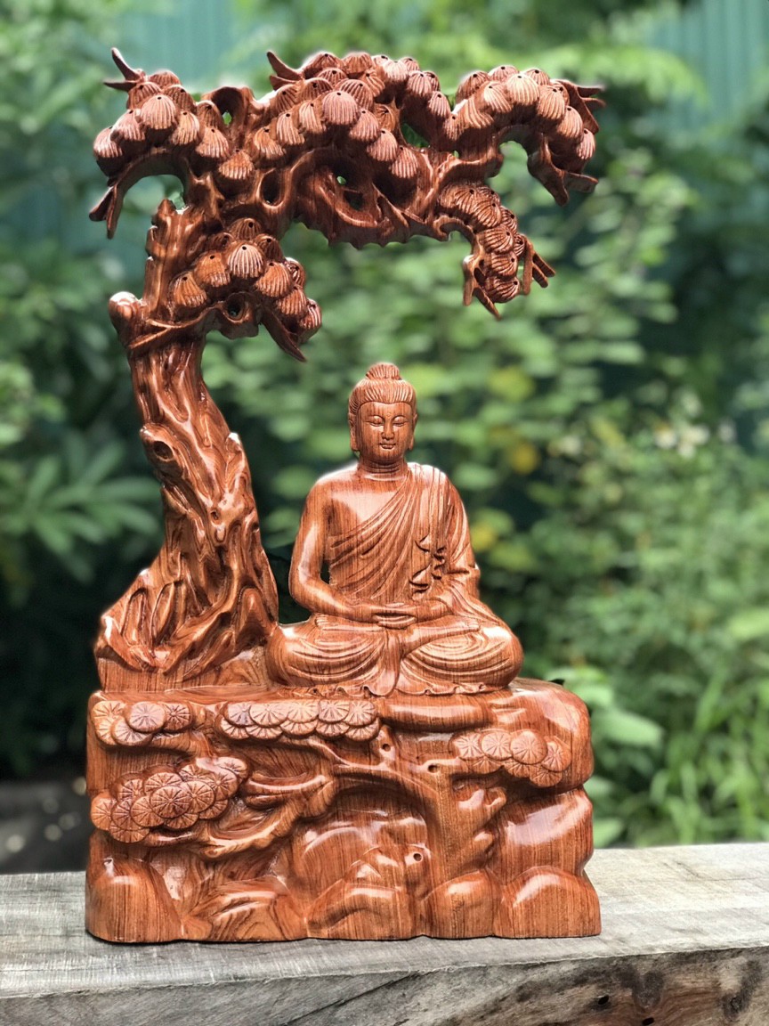 _ Tượng phật thích ca ngồi gốc cây tùng được trạm khắc tỉ mỉ ,Tinh sảo kỳ công tượng được làm và hoàn thiện do ,Bàn tay khối óc tài tài hoa ,Từ những người thợ dầy rặn kinh nghiệm ,Cũng như tay nghề cao trong làng nghề truyền thống .Chính vì thế tượng phật thích ca đã đáp ứng đầy đủ những tiêu trí ( Đẹp bền rẻ ) Thẩm mỹ nghệ thuật với chất lượng tuyệt vời
