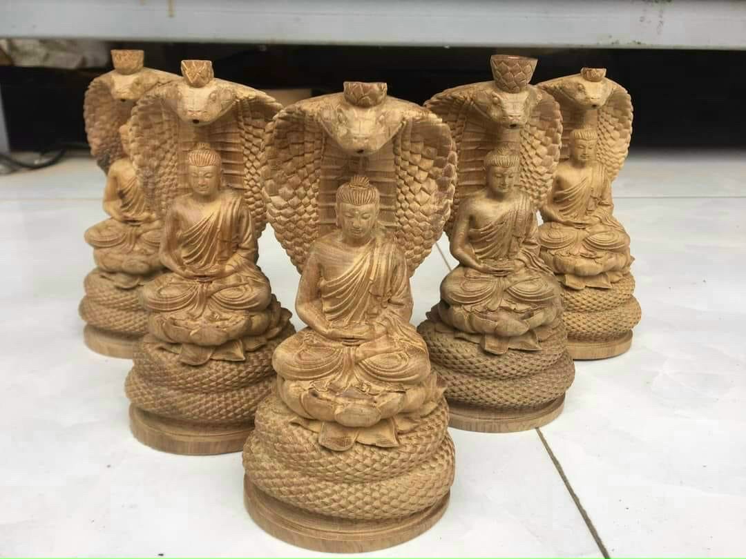 ✨Tượng phật thích ca xông trầm bằng gỗ bách xanh thơm nức kt cao 15×8×8cm