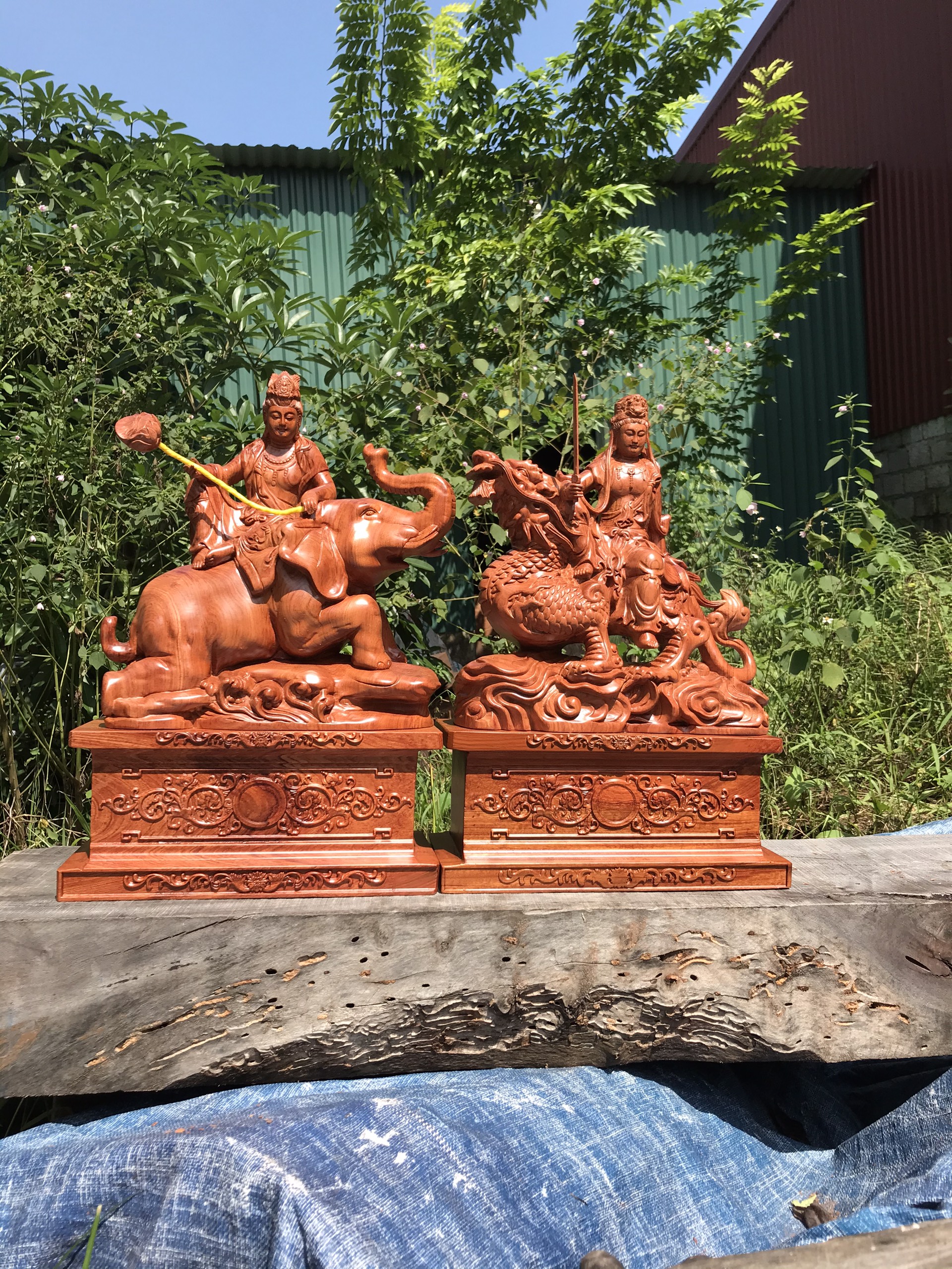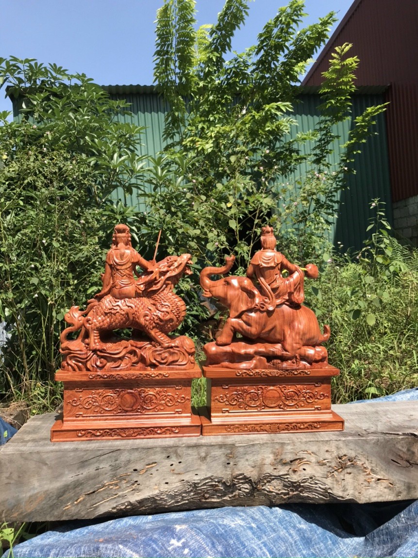 Tượng Văn Thù - Phổ Hiền mộc cao hơn 1 mét có sẵn tại cửa hàng