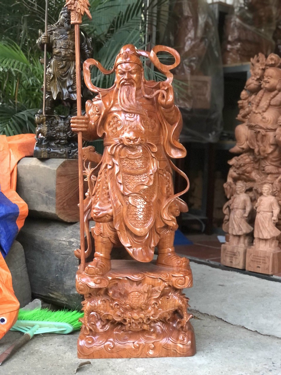 Tượng Quan Công đứng cầm đao cao 80cm | Quan Thánh gỗ hương đứng trấn ải
