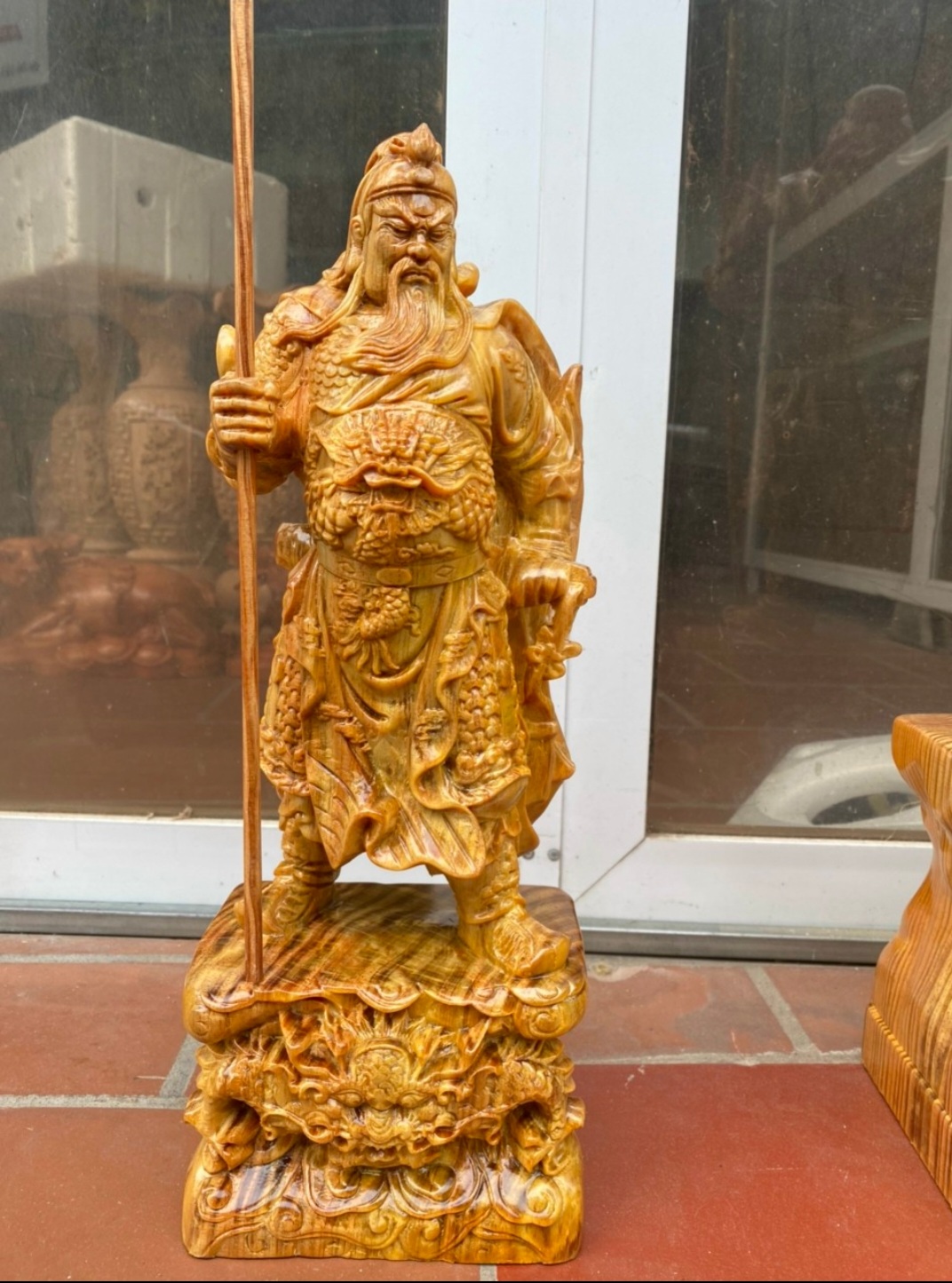 _ Tượng được trạm khắc tỉ mỉ ,tinh sảo kỳ công .Đi hầu hết tất cả mọi chi tiết góc ngách nội dung hoa văn của tượng đều được gọt tỉa chỉnh sửa sắc nét hoàn toàn bằng tay thủ công .Tượng được làm và hoàn thiện do bàn tay khối óc tài hoa .Từ những người thợ dầy dặn kinh nghiệm cũng như tay nghề cao trong làng làng nghề truyền thống .Chính vì thế tượng quan công bằng gỗ huyết long đã đáp ứng đầy đủ mọi tiêu trí cần thiết như ( Đẹp bền rẻ ) Thẩm mỹ nghệ thuật với chất lượng tuyệt vời
