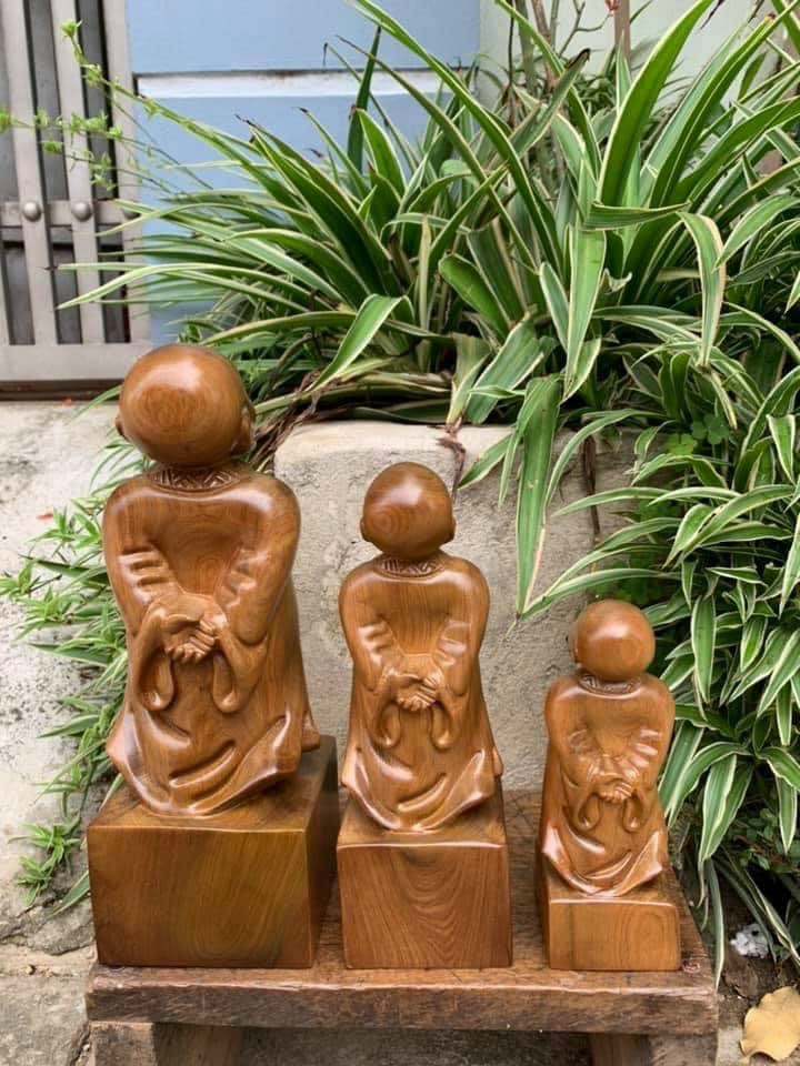 Bộ tượng tam không 3 chú tiểu gỗ bách xanh. Giá 700k