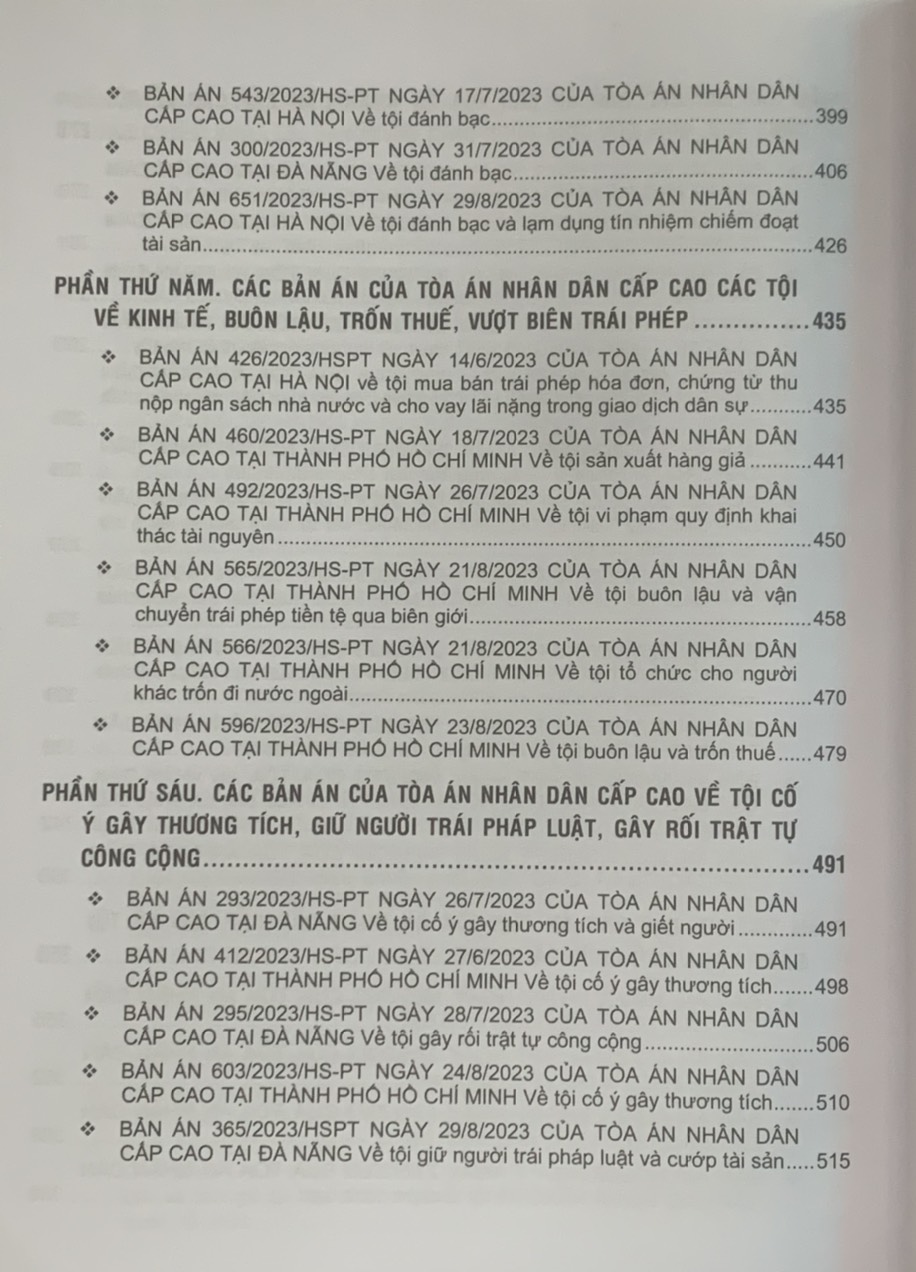 Phần thứ sáu. Các Bản án của Tòa án nhân dân cấp cao về tội cố ý gây thương tích và bắt, giữ người trái pháp luật, gây rối trật tự công cộng
