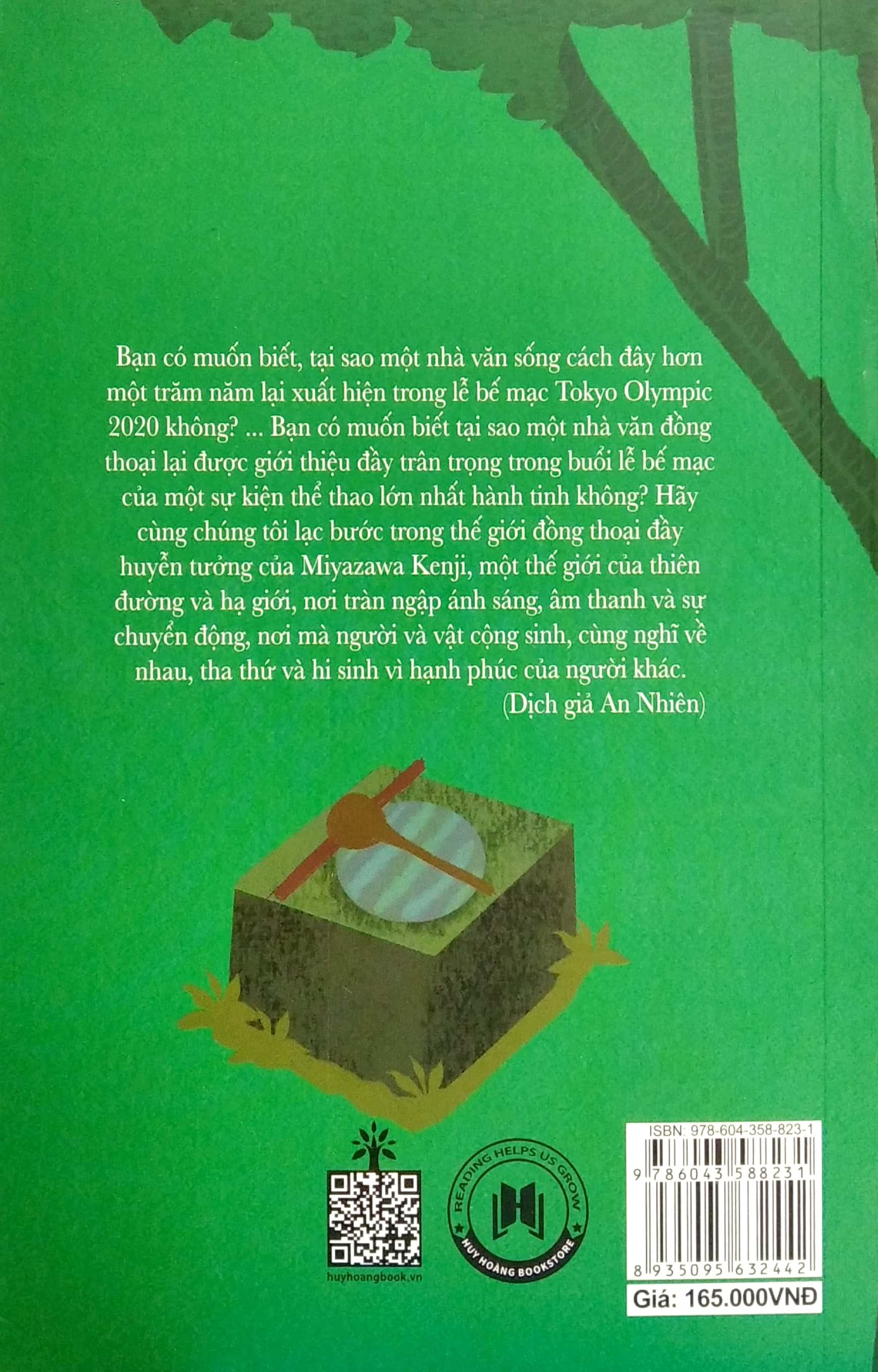 “Bạn có muốn biết, tại sao một nhà văn sống cách đây hơn một trăm năm lại xuất hiện trong lễ bế mạc Tokyo Olympic 2020 không? Bạn có muốn biết tại sao một nhà văn đồng thoại lại được giới thiệu đầy trân trọng trong buổi lễ bế mạc của một sự kiện thể thao lớn nhất hành tinh không? Hãy cùng chúng tôi lạc bước trong thế giới đồng thoại đầy huyễn tưởng của Miyazawa Kenji, một thế giới của thiên đường và hạ giới, nơi tràn ngập ánh sáng, âm thanh và sự chuyển động, nơi mà người và vật cộng sinh, cùng nghĩ về nhau, tha thứ và hi sinh vì hạnh phúc của người khác.”