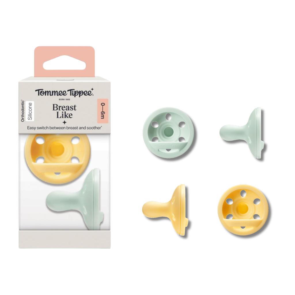 Mua tại TiktokTy Ngậm Mô Phỏng Ti Mẹ Dành Cho Bé Từ 0 - 6 Tháng, 6 - 18 Tháng (Vỉ Đôi) Thương hiệu: Tommee Tippee – Anh Quốc Mã sản phẩm: Khi bé bước vào những tháng đầu đời, việc làm quen với thế giới xung quanh có thể khiến bé yêu cảm thấy khó chịu hoặc quấy khóc. Hiểu được tâm lý ấy của các bé, Tommee Tippee đã cho ra mắt dòng sản phẩm ty ngậm mô phỏng ti mẹ – một sản phẩm không chỉ giúp bé cảm thấy an tâm mà còn hỗ trợ mẹ chăm sóc bé dễ dàng hơn. Ty ngậm mô phỏng ti mẹ Tommee Tippee cực kỳ xinh xắn, sang trọng Ty ngậm mô phỏng ti mẹ của nhà Tommee Tippee không chỉ là một giải pháp giúp bé cảm thấy gần gũi như khi bú mẹ, mà còn giúp làm dịu cơn quấy khóc, hỗ trợ bé ngủ ngon và cảm thấy an toàn hơn trong những giờ phút xa mẹ. Với thiết kế đặc biệt mô phỏng cấu trúc tự nhiên của ti mẹ, ty ngậm sẽ giúp bé dễ dàng thích nghi, đồng thời mang lại sự thoải mái tối đa, không gây khó chịu cho nướu hay răng miệng đang phát triển của bé. Đây là phiên bản Ty ngậm mô phỏng ti mẹ mới nhất của Tommee Tippee. Với phiên bản này, sản phẩm sẽ không còn hộp đựng riêng từng ty ngậm mà chỉ có hộp vỏ chung cho hai ty ngậm vỉ đôi. Sự điều chỉnh này dựa theo chính sách hạn chế rác thải nhựa, bảo vệ môi trường của tập đoàn Mayborn. Không dừng lại ở đó, ty ngậm mô phỏng ti mẹ còn được chế tác từ silicone y tế siêu mềm mịn, đảm bảo an toàn tuyệt đối cho làn da nhạy cảm của bé. Đây không chỉ là một sản phẩm chăm sóc bé yêu, mà còn là người bạn đồng hành cùng mẹ trong hành trình nuôi con khoa học, an toàn và tiện lợi đấy! Silicon cao cấp siêu nhẹ và an toàn tuyệt đối cho bé yêu Đặc điểm nổi bật của ty ngậm silicon siêu nhẹ, thiết kế cân xứng: