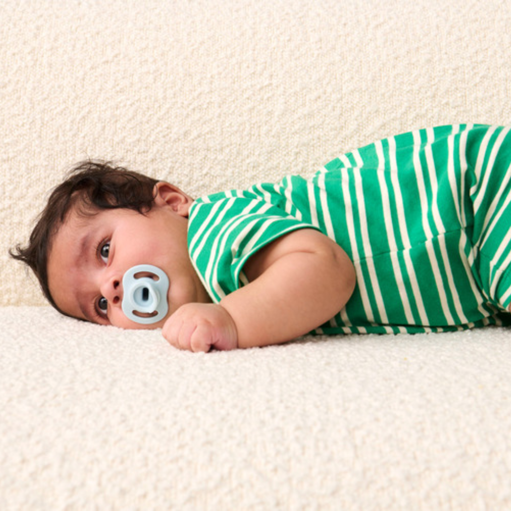 Giới thiệu Ty ngậm Medela Baby Soft Silicon 6 - 18 tháng một mảnh siêu mềm, được thiết kế để hỗ trợ trẻ bú tự nhiên.: Hình dạng chỉnh nha đối xứng phẳng được thiết