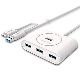 ✨Ugreen 20285 50CM Màu Trắng Bộ chia Hub usb 3.0 ra 4 cổng 0.5M usb 3.0 hỗ trợ chức năng OTG CR113 - Hàng chính hãng