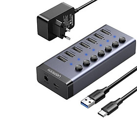 ✨Ugreen 90307 hub ra 7 cổng USB 3.0 + Adapter 12v-2A có hỗ trợ truyền dữ liệu và sạc có kèm dây USB type C chuẩn cắm EU chân tròn Bộ chia Màu Xám CM481 20090307 - Hàng chính hãng