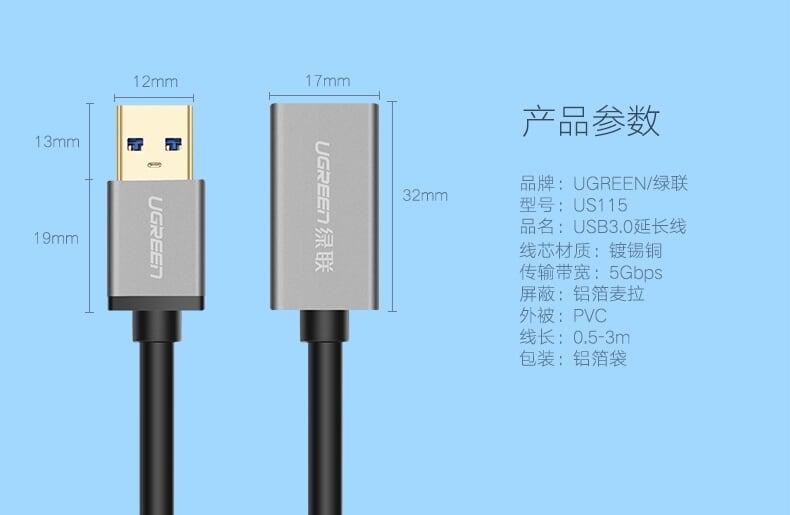 Mua tại TiktokUgreen 10495 1m usb 3.0 male to female extension cable us115