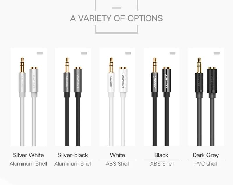 Ugreen 10532 3.5Mm Male To 3.5Mm Female ×2 Metal Connectors Gold Plated 20Cm AV123 1. Features: split 3.5 audio port from 1 to 2 ports 2. Cable length: 20 CM 3. Color:Black Gray 4. Input: