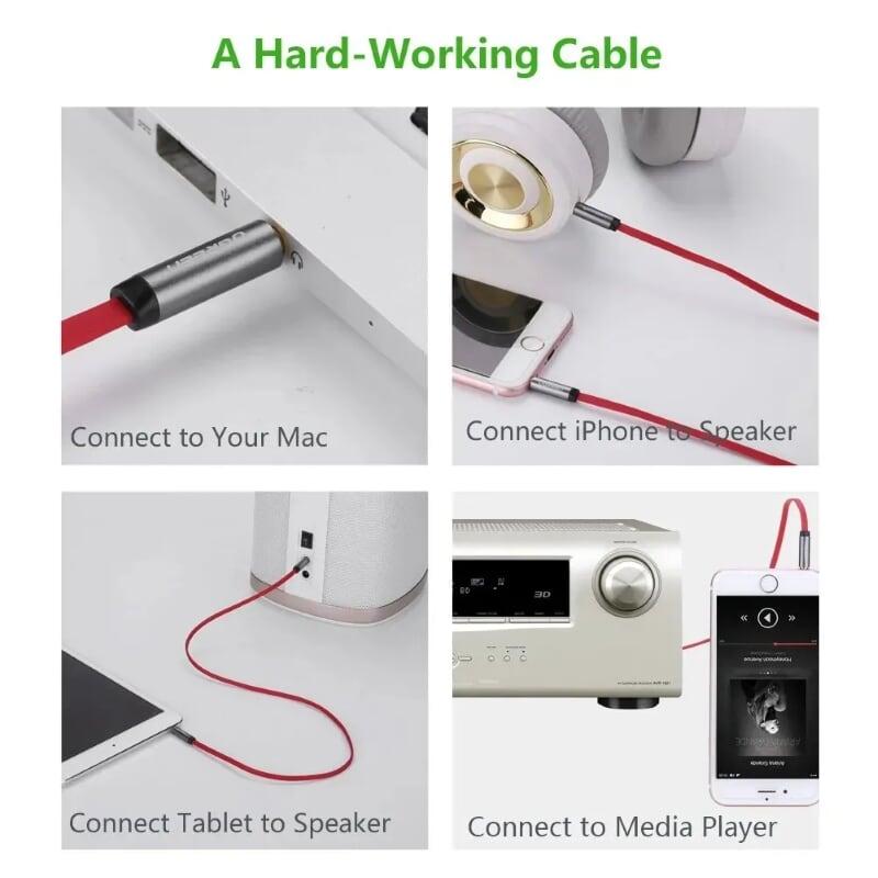 1.Connector type: Auxiliary 2.Cable type: Aux 2.Cable material: Nylon braided jacket, 4k gold-plated plugs, sturdy brass shells 3.Compatible devices: Laptop, Car aux stereo, Hedaphone, PlayStation, Personal Computer, MP3 MP4 players, Tablet, Xbox, Smartphone, Speaker 4.Color: