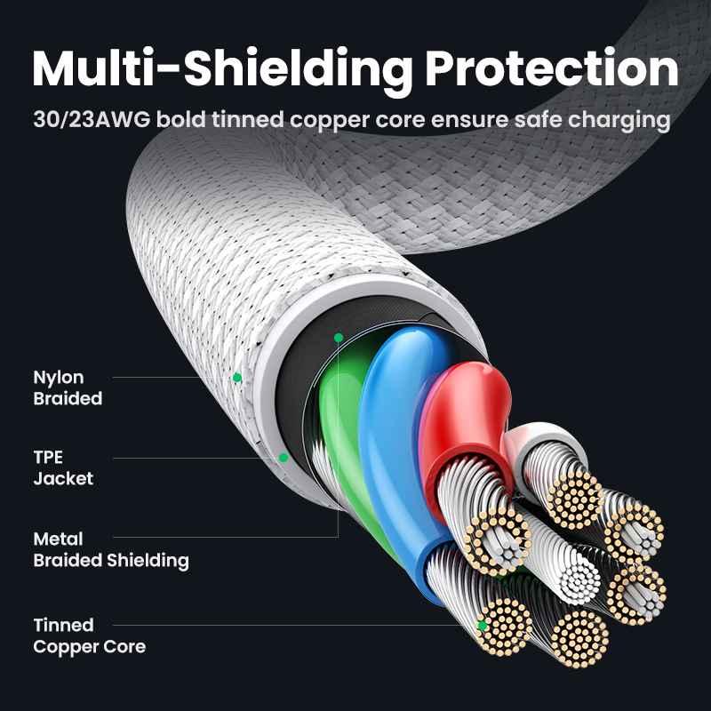 1. Function: Charging & Data Sync 2. USB 2.0 speed up to 480Mbps 3. 5A fast charge 4. Support PD3.0/QC4.0/FCP(100W max) 5. Wire core: tin-plated oxygen free copper 6. Multiple internal shielding 7. Can not