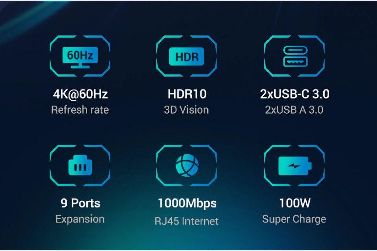 Output: 2usb-c + RJ45 + HDMI 4K60HZ + PD + SD + TF + 2USB3.0