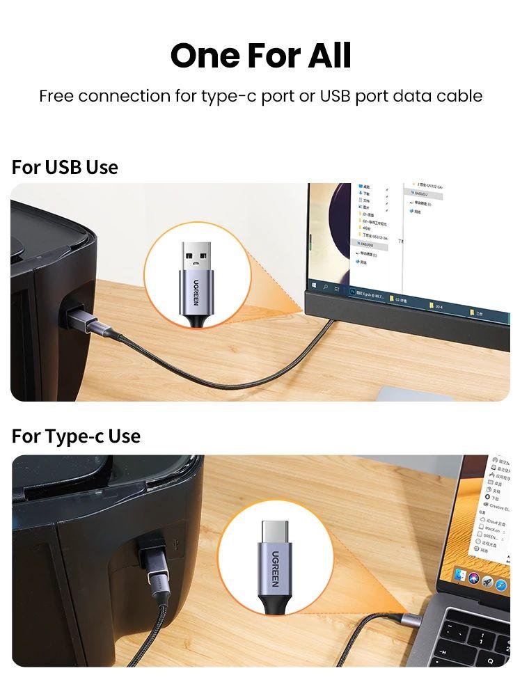 ✨Ugreen UG20120US382TK Usb 2.0 đực Máy In ra đầu cái Type C vỏ nhôm màu xám - HÀNG CHÍNH HÃNG
