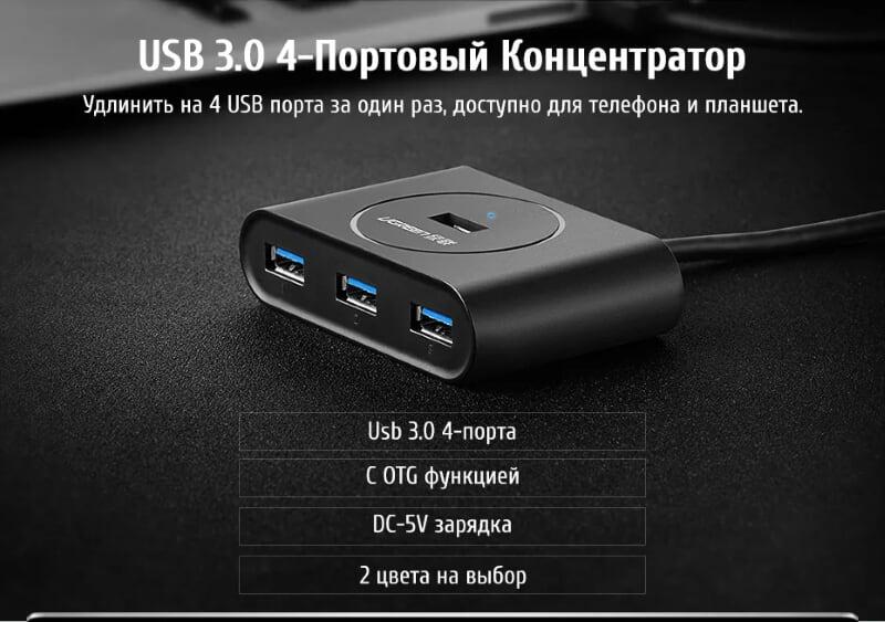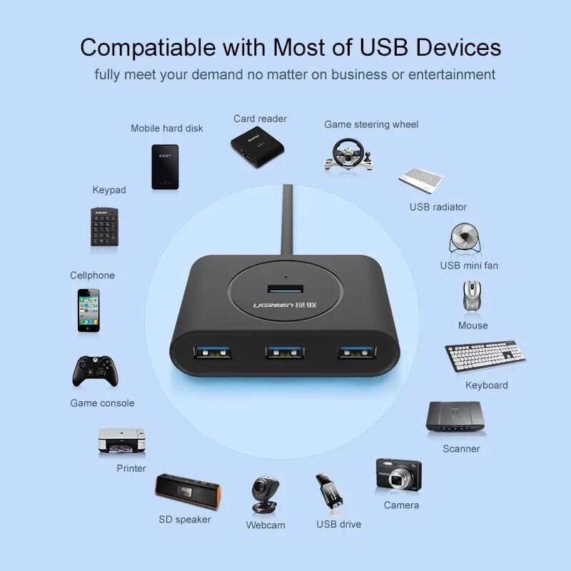 Ugreen 20277 1m 4 ports usb 2.0 hub with micro usb power port màu đen cr106 1. Input : USB-A 2. Output : 4 Port USB 2.0 . 3. Color : Black 4. Length :