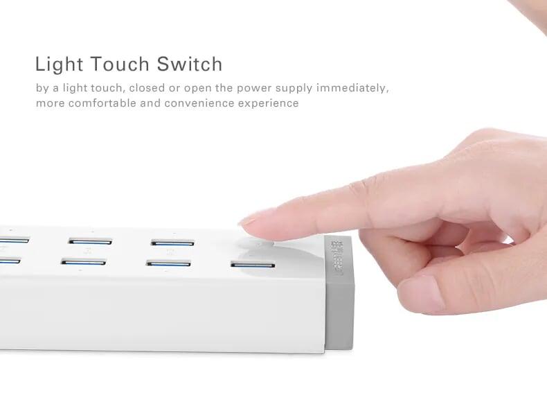 1.Input: 1x USB-C Female (data transfer only) 2.Output: 7x USB3.0 Female 3.Total Output: 5V/3.4A Max 4.Power Supply: DC 5.5mm, 12V/2A 5.USB3.0 5Gbps 6.Compliance with BC 1.2 fast charging protocol (only available for USB3.0 ports from