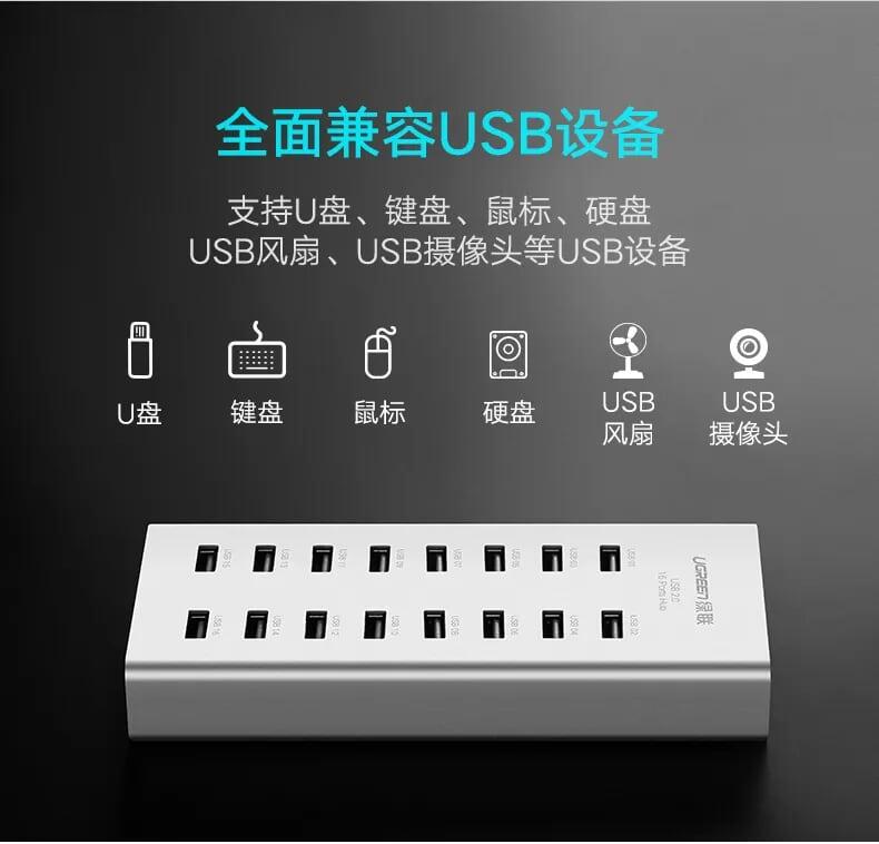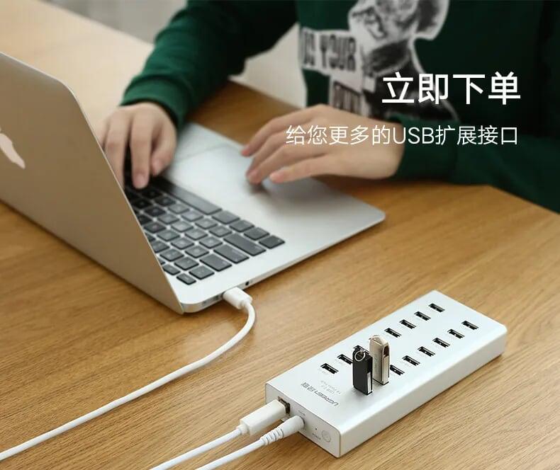 ✨Ugreen UG2029820298TK Màu Bạc Bộ chia HUB USB 2.0 sang 16 USB 2.0 hỗ trợ nguồn cao cấp - HÀNG CHÍNH HÃNG
