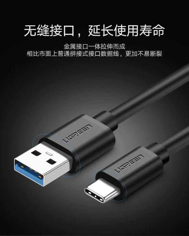 Cáp sạc nhanh & truyền dữ liệu Ugreen USB-A 3.0 sang Type-C màu đen US187 - chube.vn