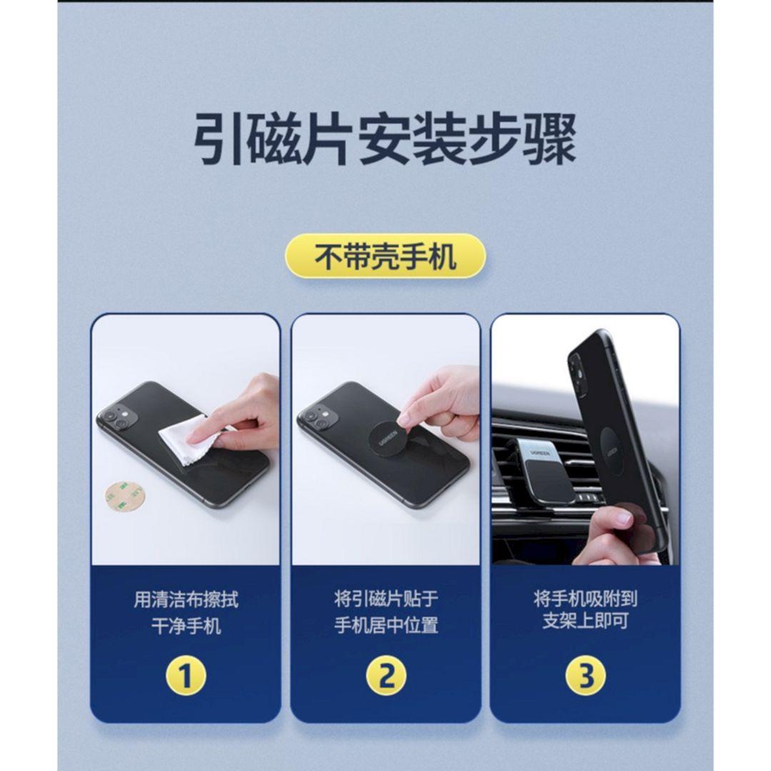 ✨Ugreen UG26352LP290TK 2 miếng dán từ tính + 1 Giá đỡ điện thoại Màu Đen bằng nhôm trên ô tô 80712B - HÀNG CHÍNH HÃNG
