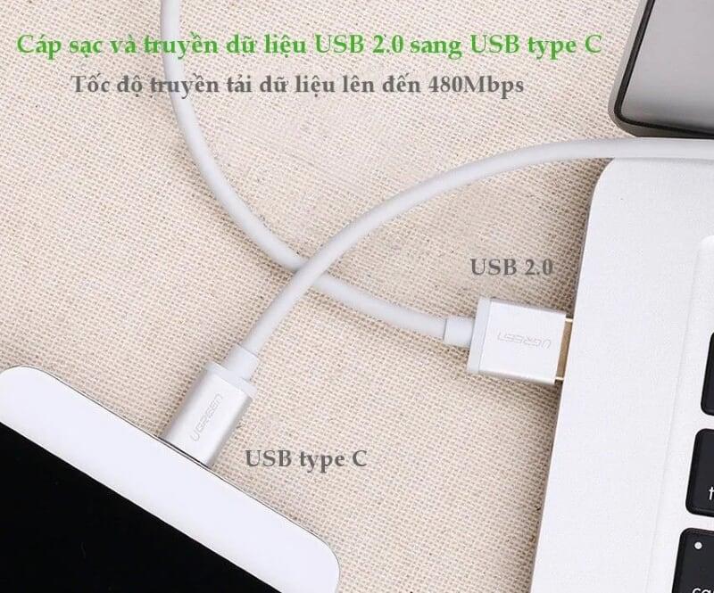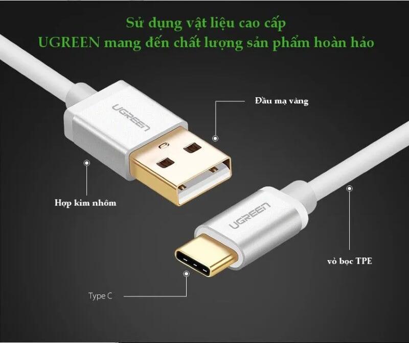 Cáp sạc nhanh USB Type C (1 đầu USB, 1 đầu USB Type-C) độ dài 2m UGREEN US28 (Giá 74k)