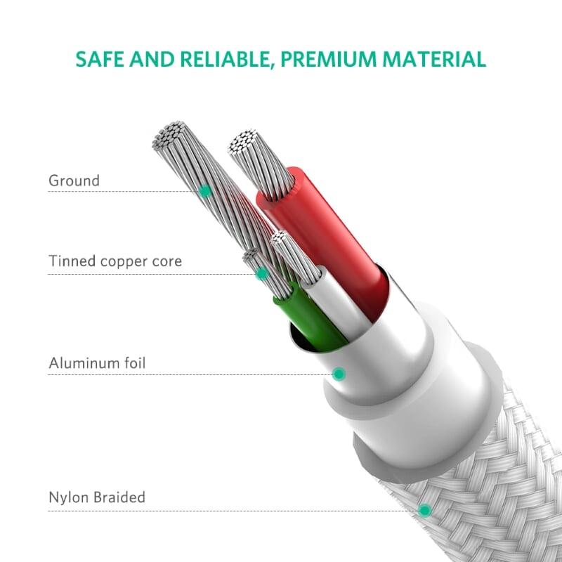 1. Charging Speed: 5V/3A 2. Data Transfer Speed: 480Mbps 3. Cable Material: Nylon 4. UGREEN USB-C Cable supports QC 4.0 / 3.0 / 2.0 / 1.0 and Huawei FCP, can charge your devices with up