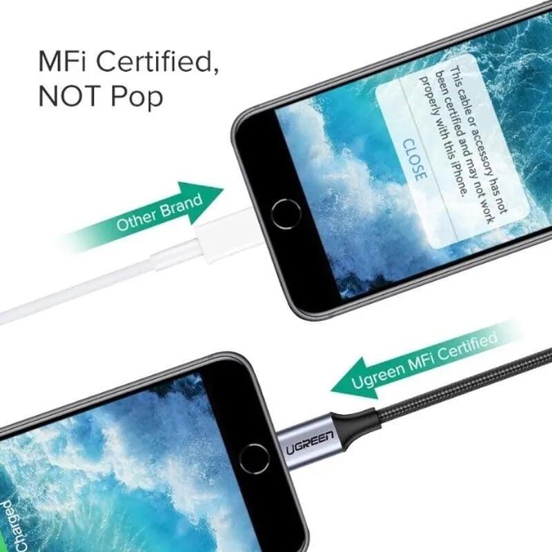 Ugreen 40987 2M MFI Lightning to USB cable cáp Aluminum Case + Braid US199 1. Function: Charging + Data transmission 2. Length: 2M 3. Color: Black 4. Compatible Brand: Apple iPhones Lightning 8 Pin Devices