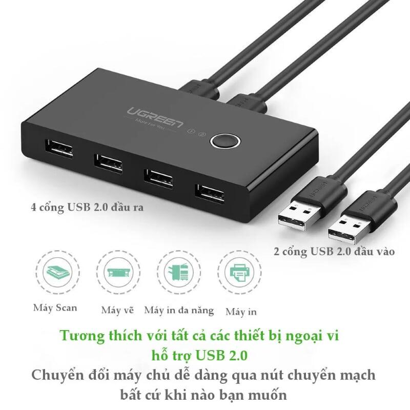 ✨Ugreen UG30767US216TK Bộ chuyển mạch USB 2.0 gộp 4 thiết bị vào 2 máy tính cao cấp - HÀNG CHÍNH HÃNG