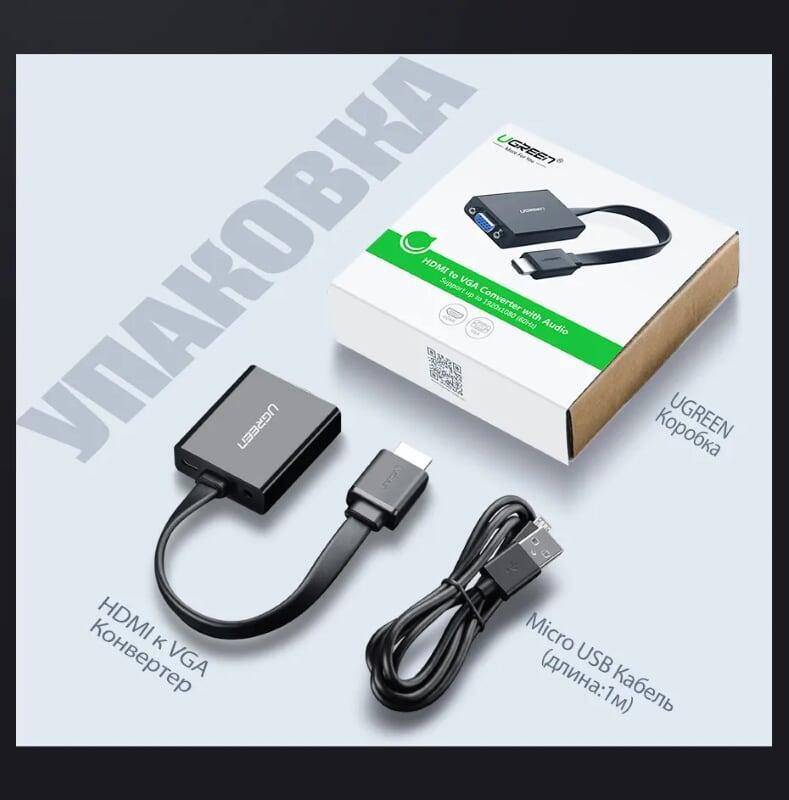 Mua tại TiktokUgreen 40248 Hdmi To Vga + 3.5Mm Audio + Mirco Usb Converter Flat Design Đen Mm103