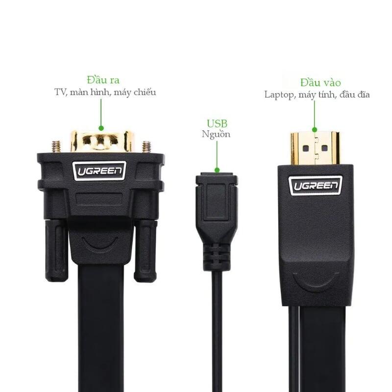 Mua tại TiktokUgreen 40267 Hdmi To Vga Converter Flat Cable Đen 1M5 Flat Mm101