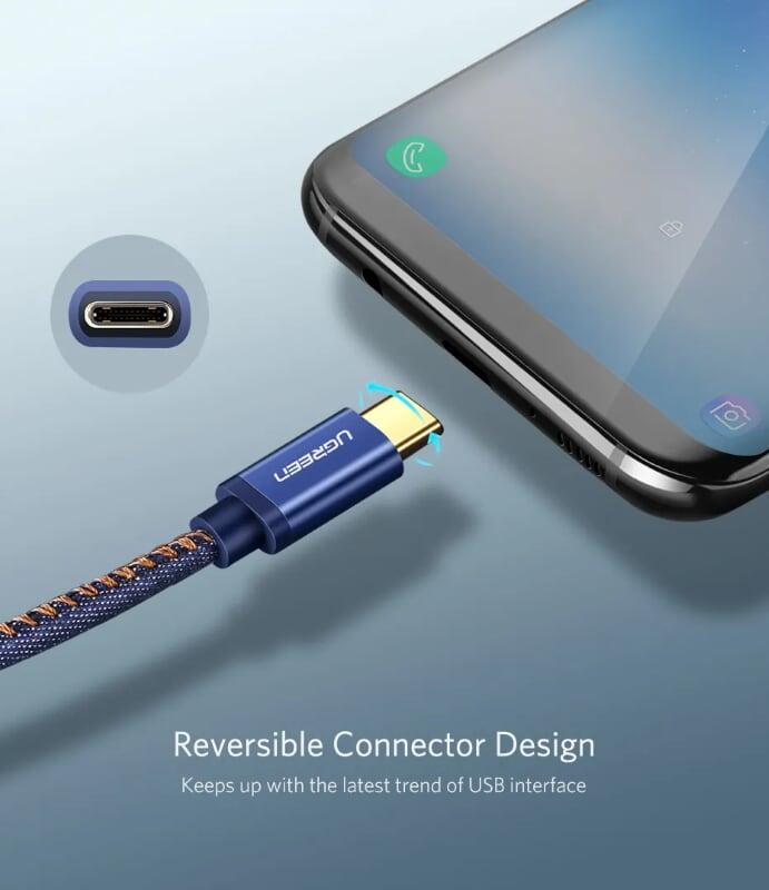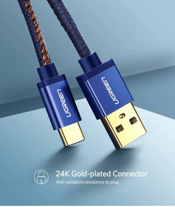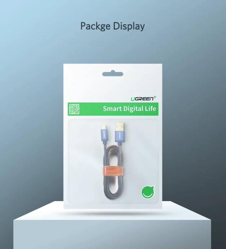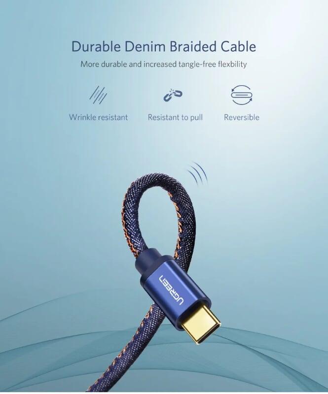 Mua tại TiktokUgreen 40344 Usb 2.0 To Tyec C Data & Charging Cable With Braid Blue 1M Us250