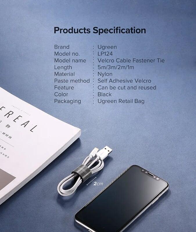 ✨Ugreen UG40354LP124TK 2M Black Velcro Cable Organizer Black - HÀNG CHÍNH HÃNG