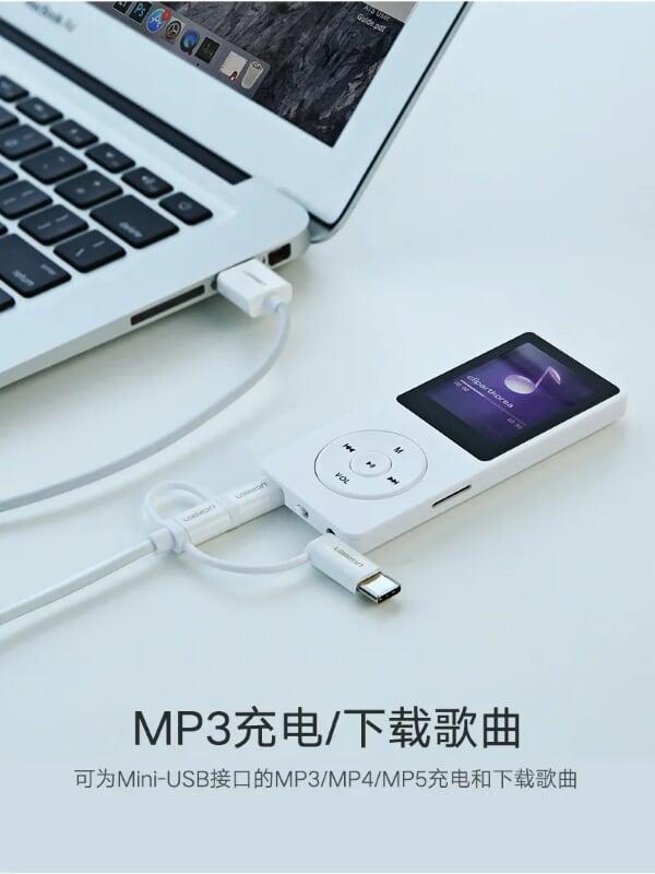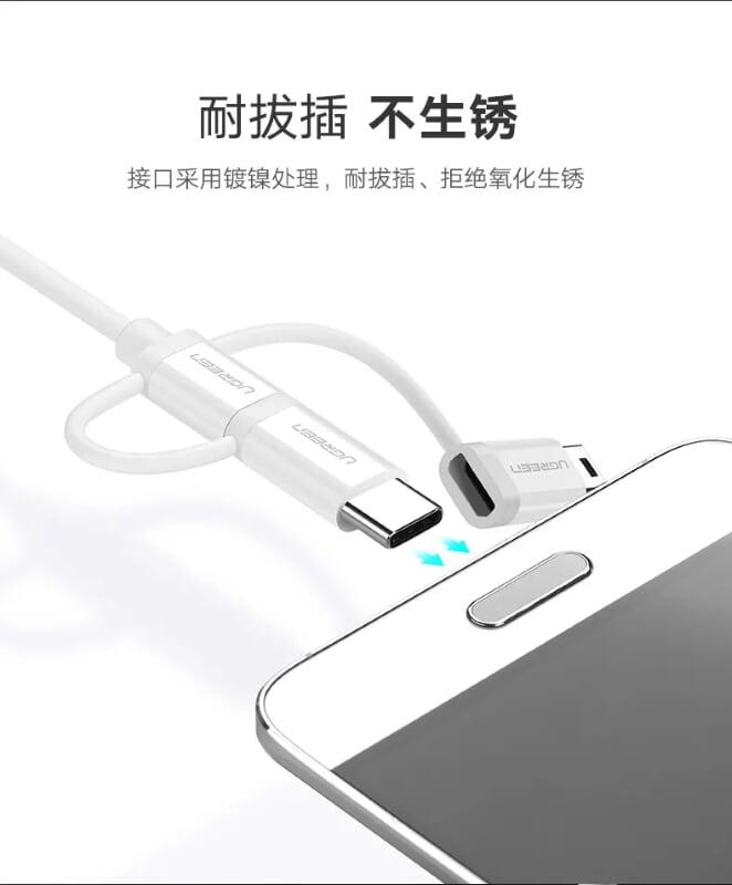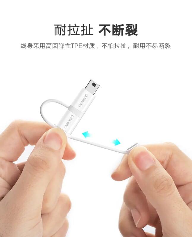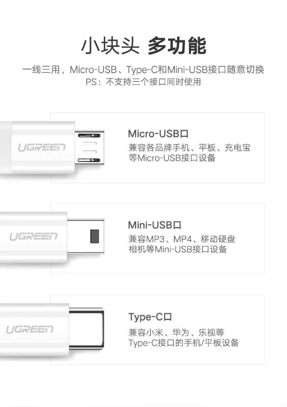 Ugreen 40418 Usb 2.0 To Micro Usb + Type C Data Cable White 1.5M Us142 1. Features: connect Laptop, Tablet USB-C port to digital camera, DSLR, music player, GPS Mini USB port 2. Cable length: