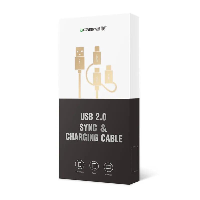 Mua tại TiktokUgreen 40767 Usb To Micro Usb+ Usb C + Mini Usb Data Cable Silver 1M Us185