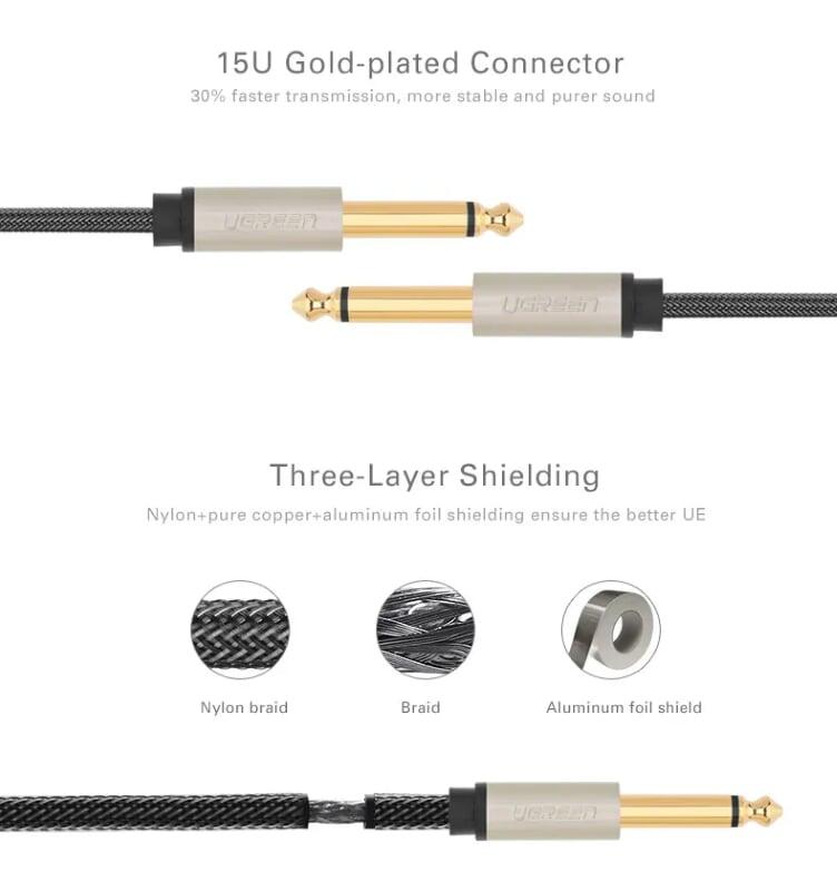 - Jacks: zinc alloy shell and 2-layer braided nylon protective layer.