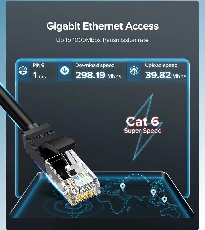 ✨Ugreen UG50181NW102TK 20M Cat6 UTP cáp mạng Gigabit dây dẹp màu đen 26AWG CCA - HÀNG CHÍNH HÃNG