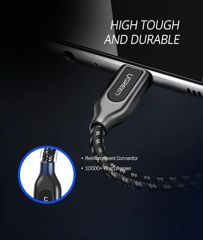 Cáp sạc nhanh USB Type C (1 đầu USB, 1 đầu USB Type-C) độ dài 2m UGREEN US28 (Giá 74k)