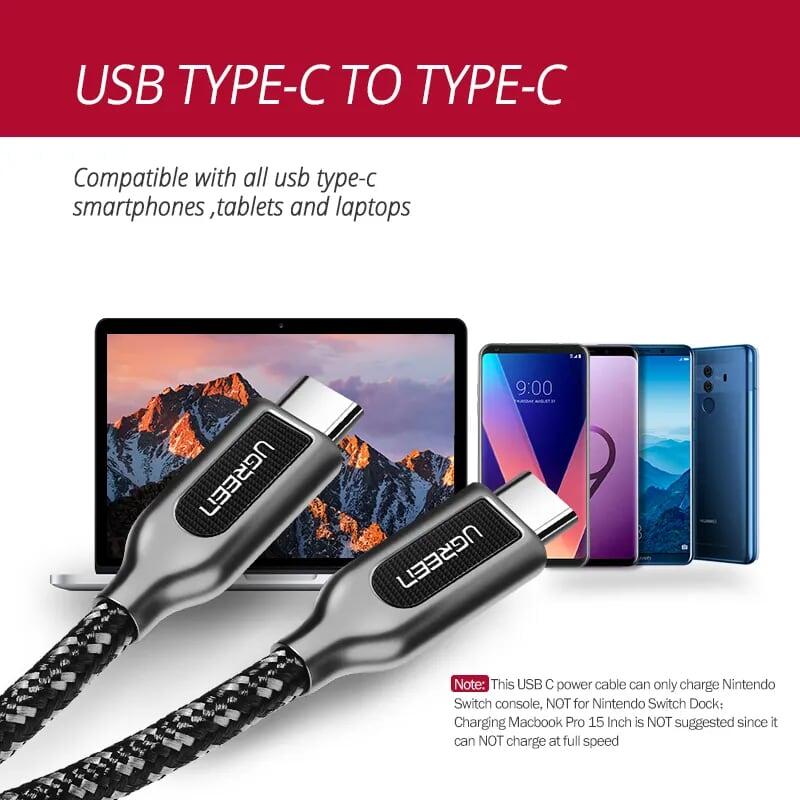 USB TYPE-C QC 3.0 100W UGREEN 80372 - Cáp sạc và truyền dữ liệu USB type C Ugreen 80372 - Hỗ trợ sạc nhanh PD QC 4.0, 3.0 công suất tối đa 100W, dòng 5A.