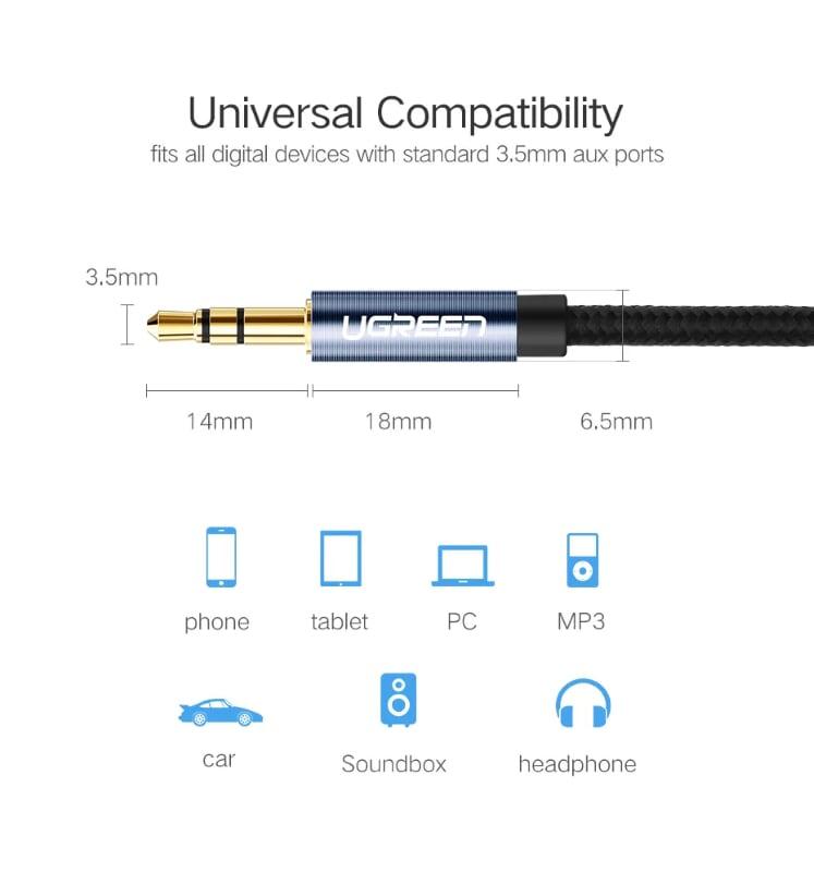 Ugreen 10737 3.5Mm Male To 3.5Mm Male Cable 5M AV119 1. Features: Cables for connecting phones, laptops, tablets with handsets. 2. Cable length: 5M 3. Color: Black 4. Jack: 2 * Audio 3.5mm Male. 5.