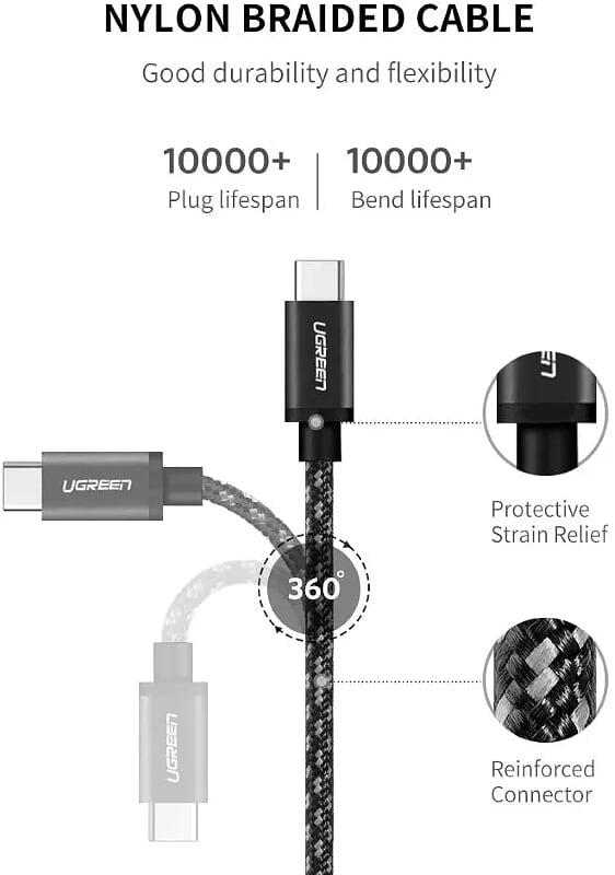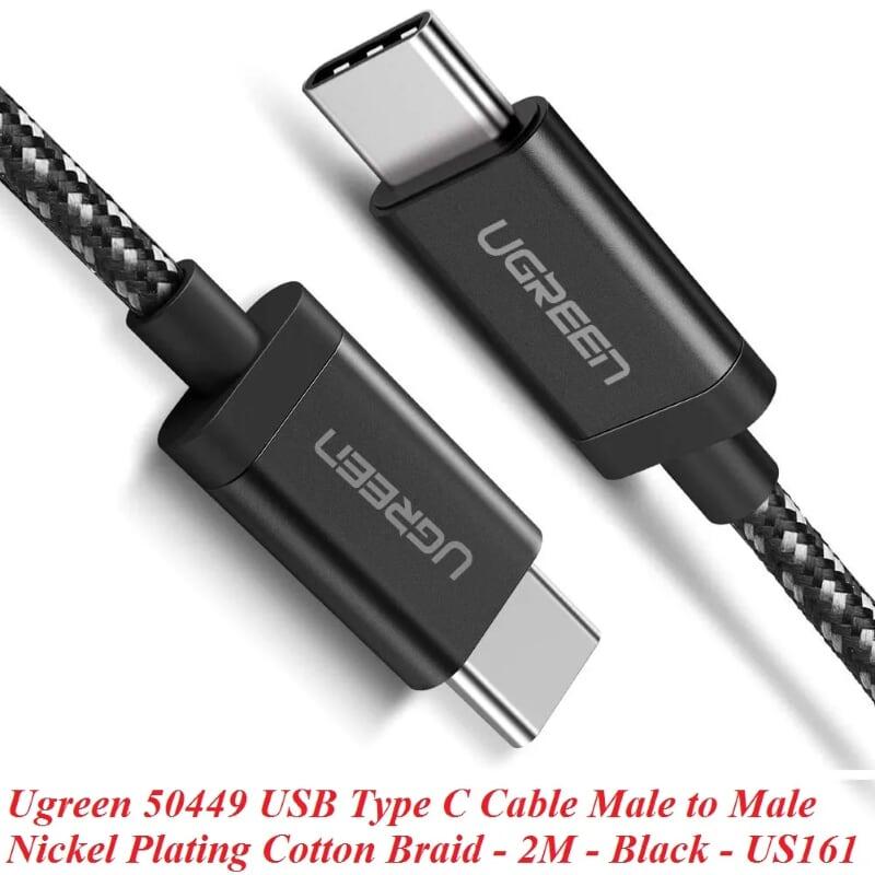 ✨Ugreen UG50449US161TK 2m màu đen dây bên vải cotton mạ nickel cáp USB 2 đầu Type C - HÀNG CHÍNH HÃNG