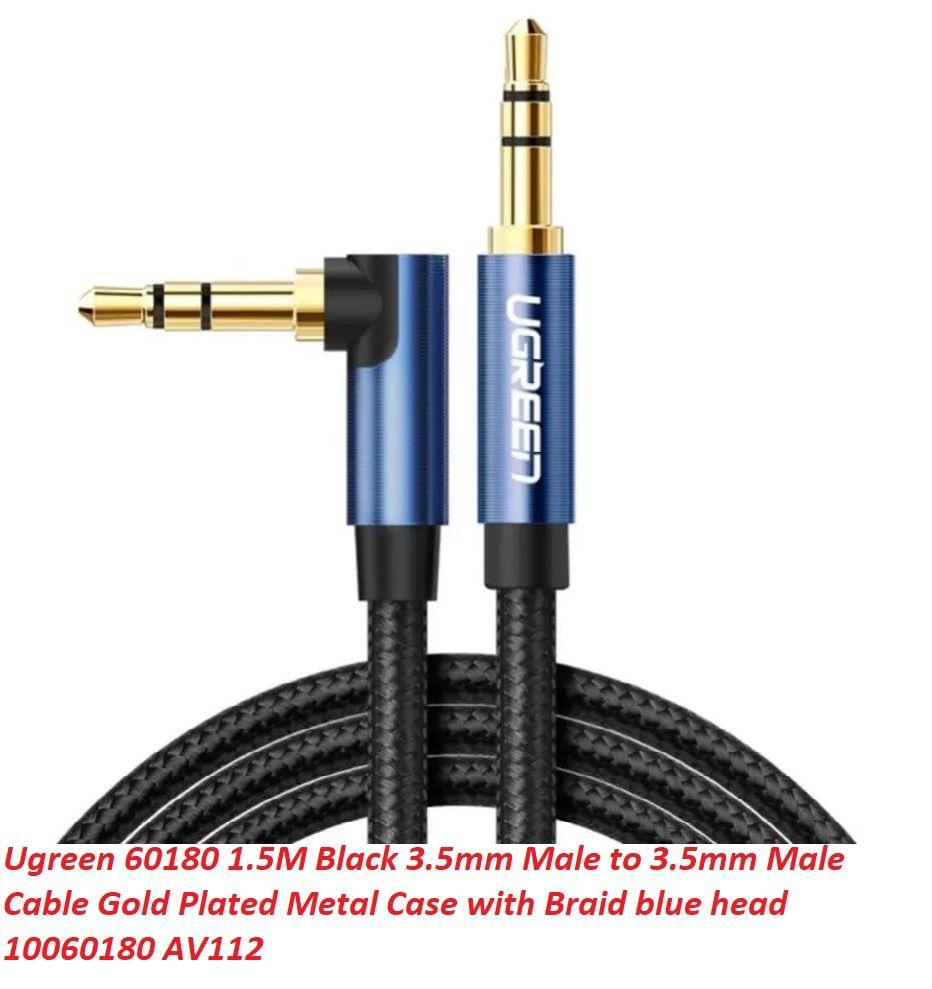 ✨Ugreen UG60180AV112TK 1.5M màu đen cáp bẻ góc 90 độ 3.5mm mạ vàng 24K đầu màu xanh bọc kim loại chống nhiễu - HÀNG CHÍNH HÃNG