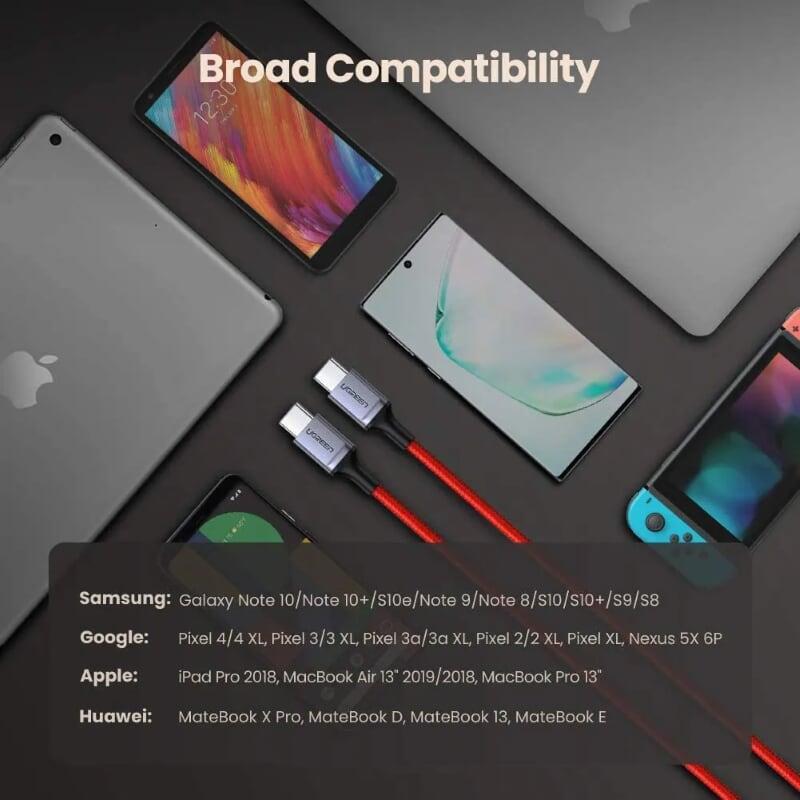 ✨Ugreen UG60186US294TK 1m 60W Cáp usb 2 đầu type c bọc nhôm chống nhiễu mạ nickel - HÀNG CHÍNH HÃNG