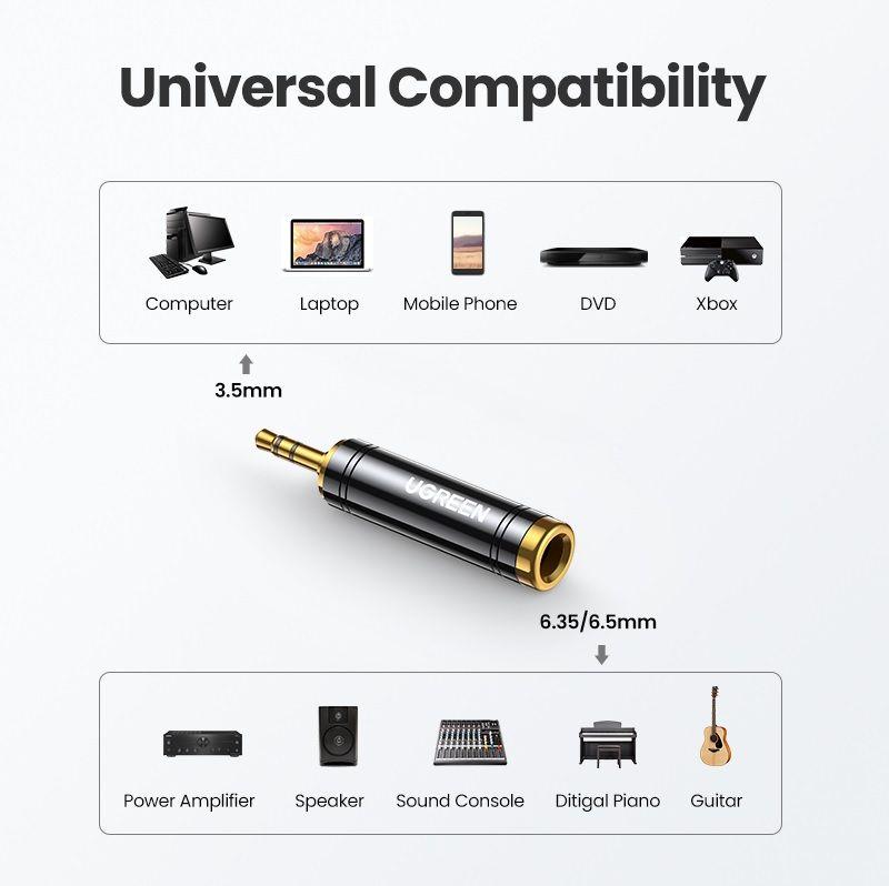 ✨Ugreen UG60711AV168TK 3.5mm đực sang 6.5mm cái Đầu Jack chuyển Audio - HÀNG CHÍNH HÃNG