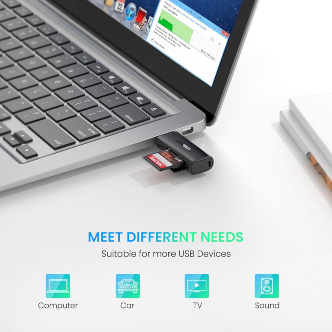 Ugreen 40753 usb 3.0 to tf + sd card readerdual card dual read white cm104 1. Input : USB 3.0 A Male 2. USB 3.0 and compatible with USB2.0 speeds up to 5Gbps 3. Output