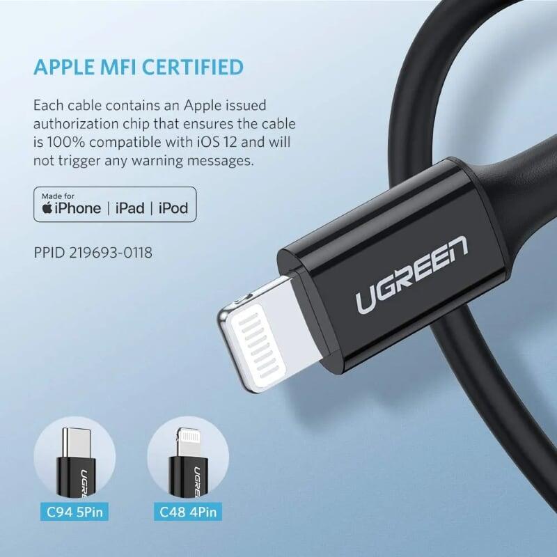 ✨Ugreen UG60751US171TK 1M màu Đen Cáp sạc + truyền dữ liệu Lightning sang Type C - HÀNG CHÍNH HÃNG