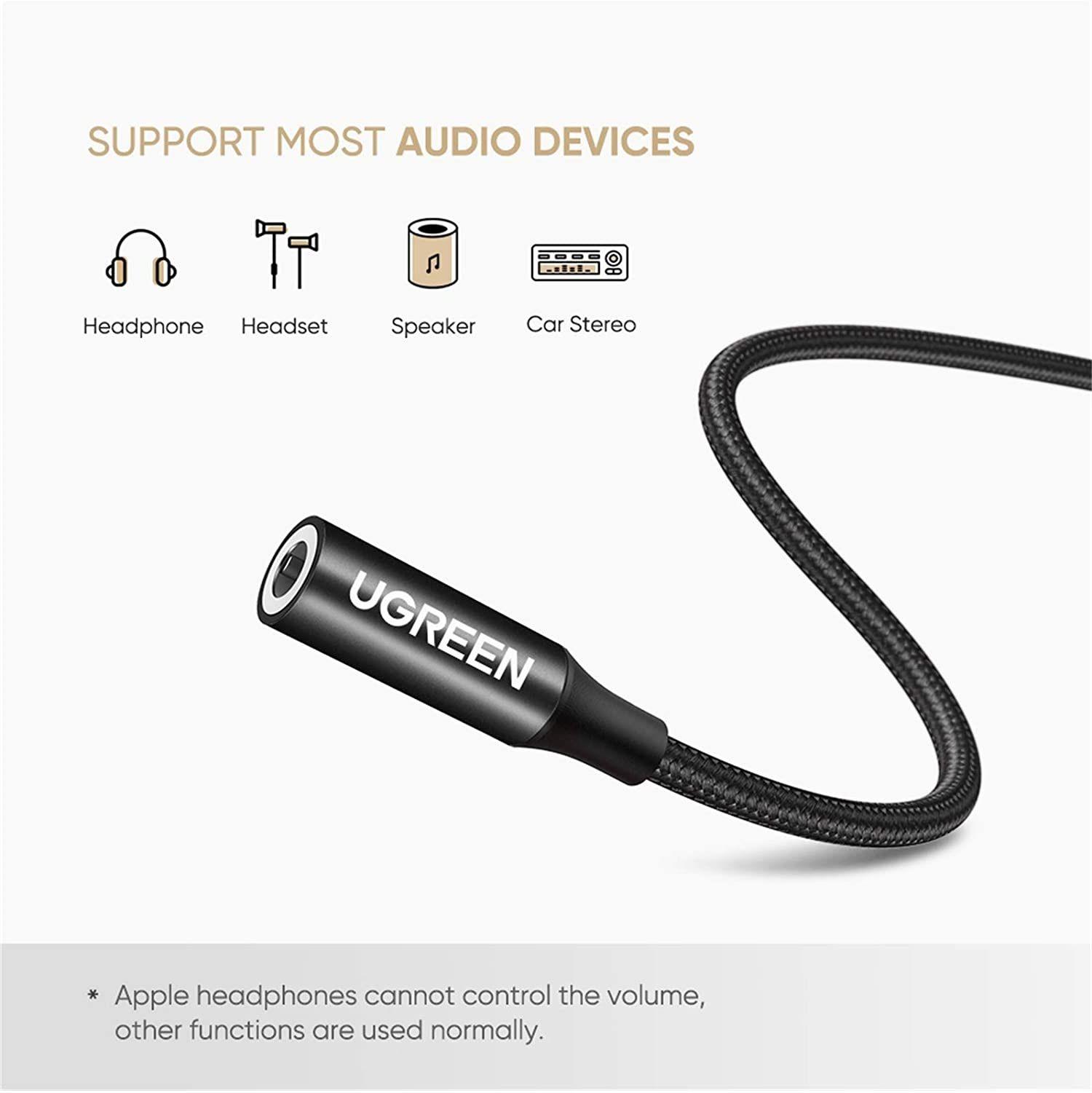 ✨Ugreen UG70858AV142TK 0.1m dây dù đầu bọc nhôm màu đen Cáp chuyển usb type c sang 3.5mm - HÀNG CHÍNH HÃNG