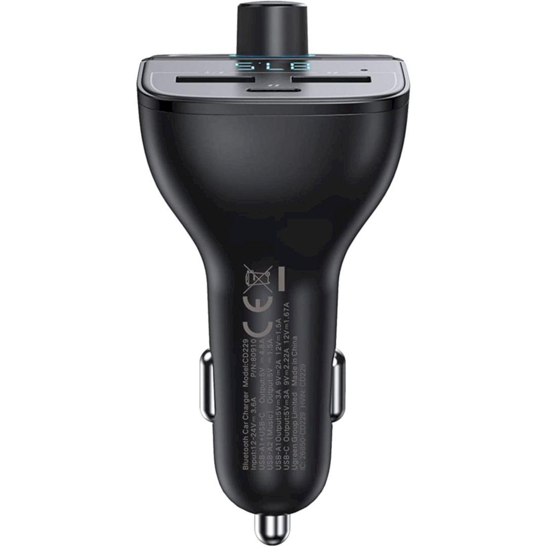 ✨Ugreen UG80910CD229TK BT 5.0 + FM + QC 3.0 + USB + TF Màu Đen Tẩu sạc đa năng gồm phát Bluetooth 5.0 + FM + PD QC3.0 + USB + đọc thẻ TF trên xe hơi - HÀNG CHÍNH HÃNG