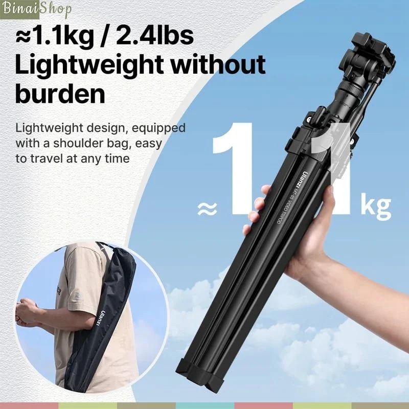 - Tripod Ulanzi MT-84 thiết kế chắc chắn từ hợp kim nhôm, nhỏ gọn linh hoạt, kết nối từ tính MagSafe , độ dài tối đa lên đến 153cm theo 7 đoạn khác nhau, khả năng xoay