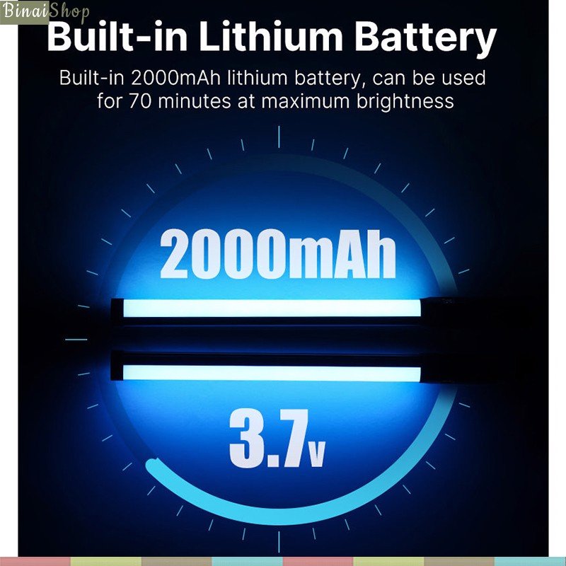 Tích hợp pin lithium dung lượng lớn 3.7V 2000mAh, hỗ trợ thời gian làm việc lên đến 70 phút ở độ sáng tối đa sau khi được sạc đầy. Sạc nhanh Type-C, hỗ trợ vừa làm việc vừa sạc.