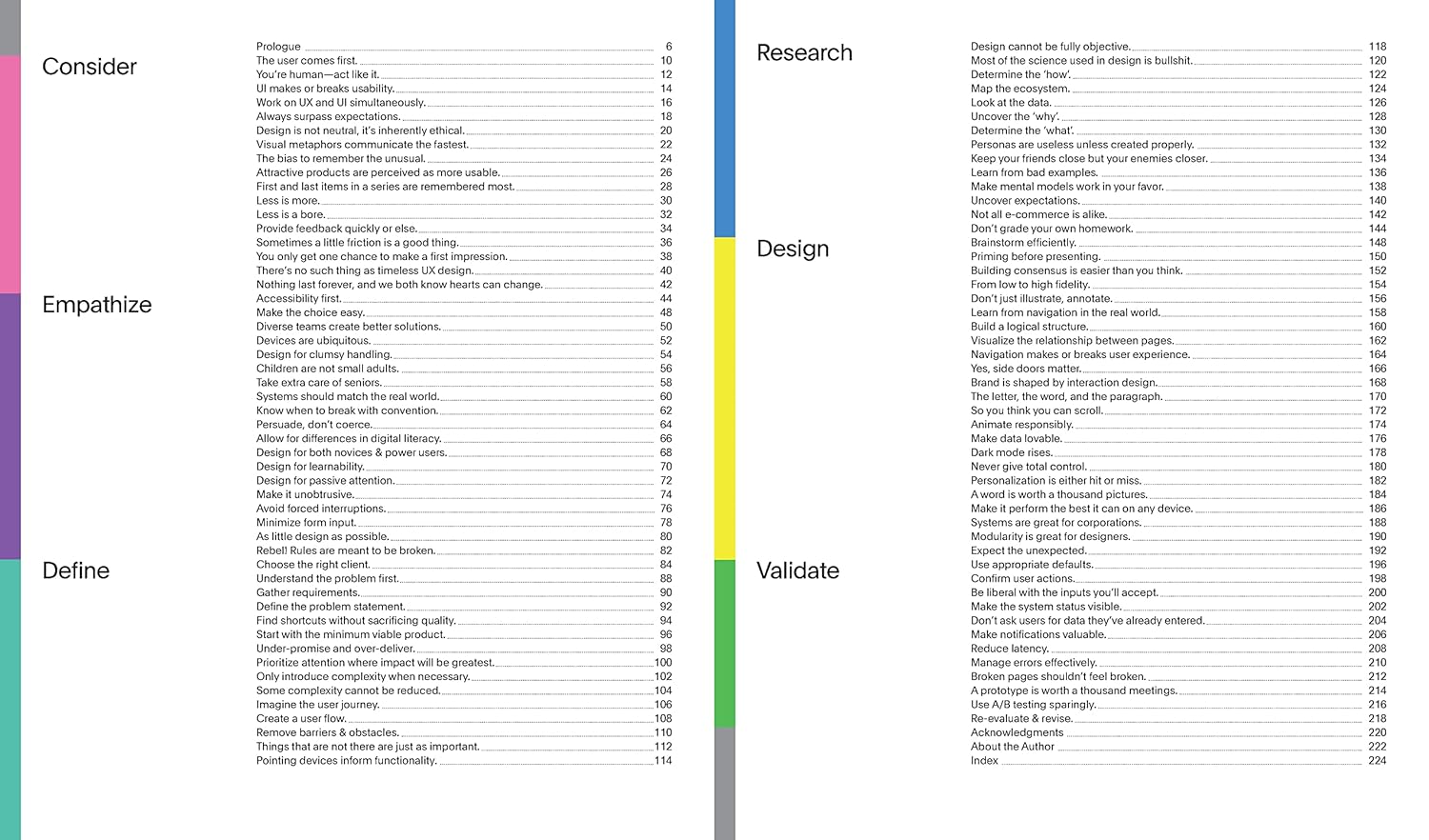 Richly illustrated and easy to navigate, Universal Principles of UX pairs clear explanations of each concept with visual examples of the ideas applied in practice. The book is organized into six broad categories: